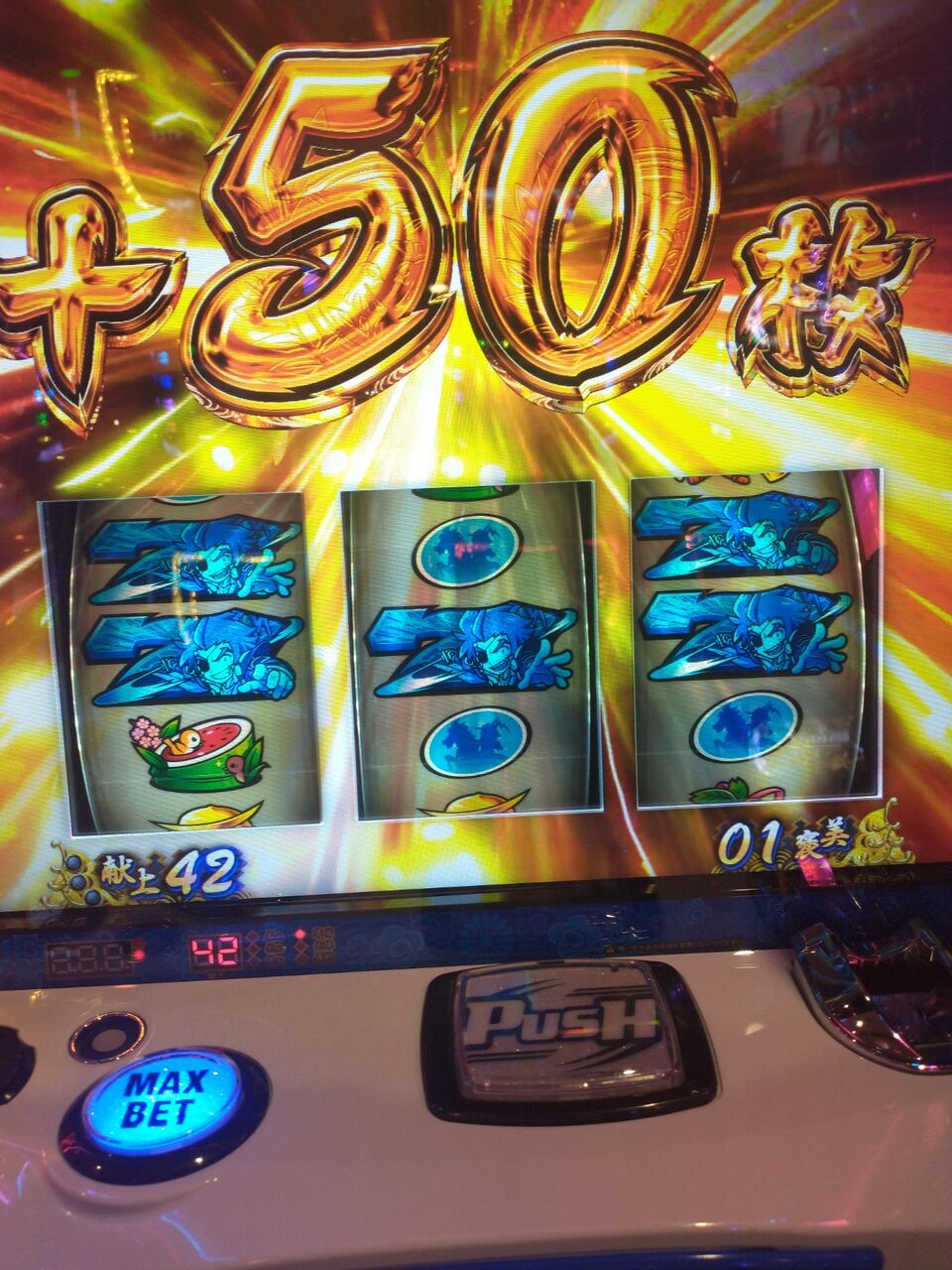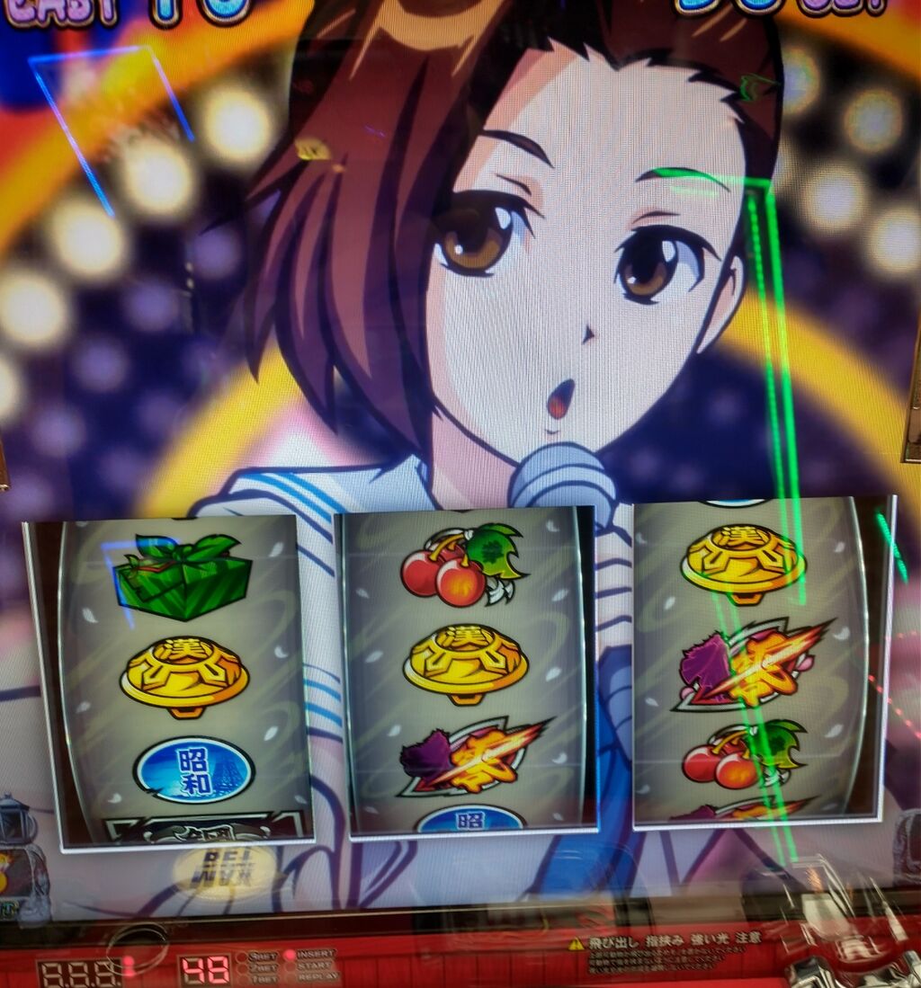 青7でチャンス目引いて小役もちょこっと引いたから危なげなく当選