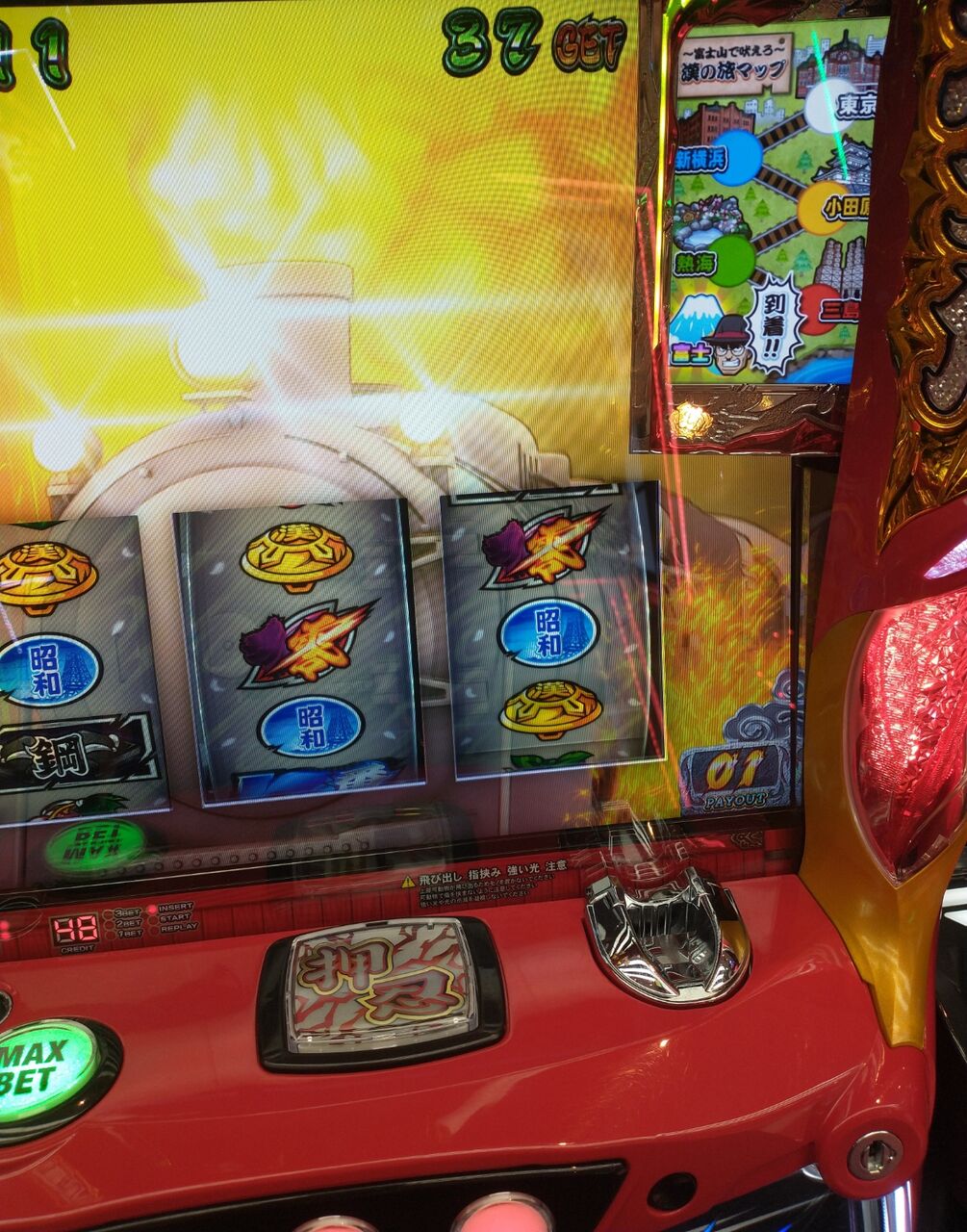 この台タッチパネル無いだろうしなんだろうと思ったら筐体右側にセンサーあってブッ叩くとプゥンッ→次回予告