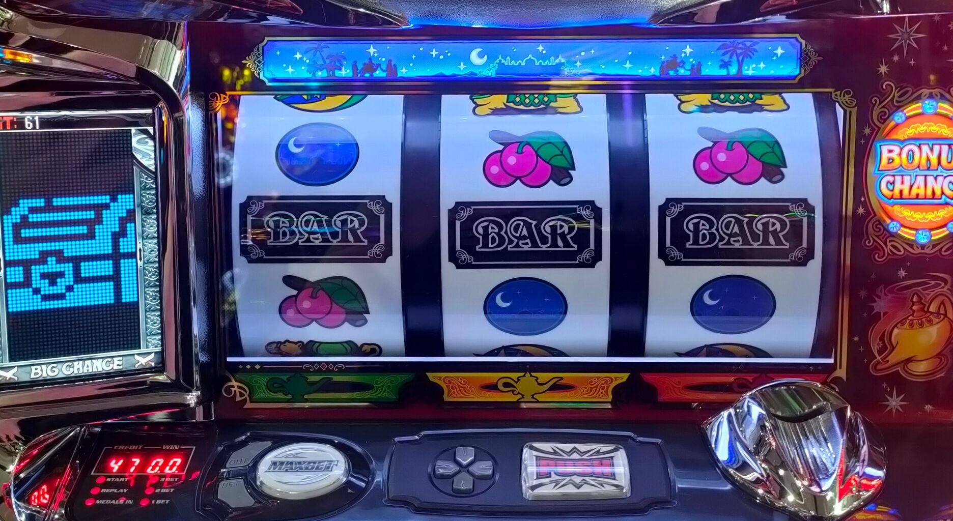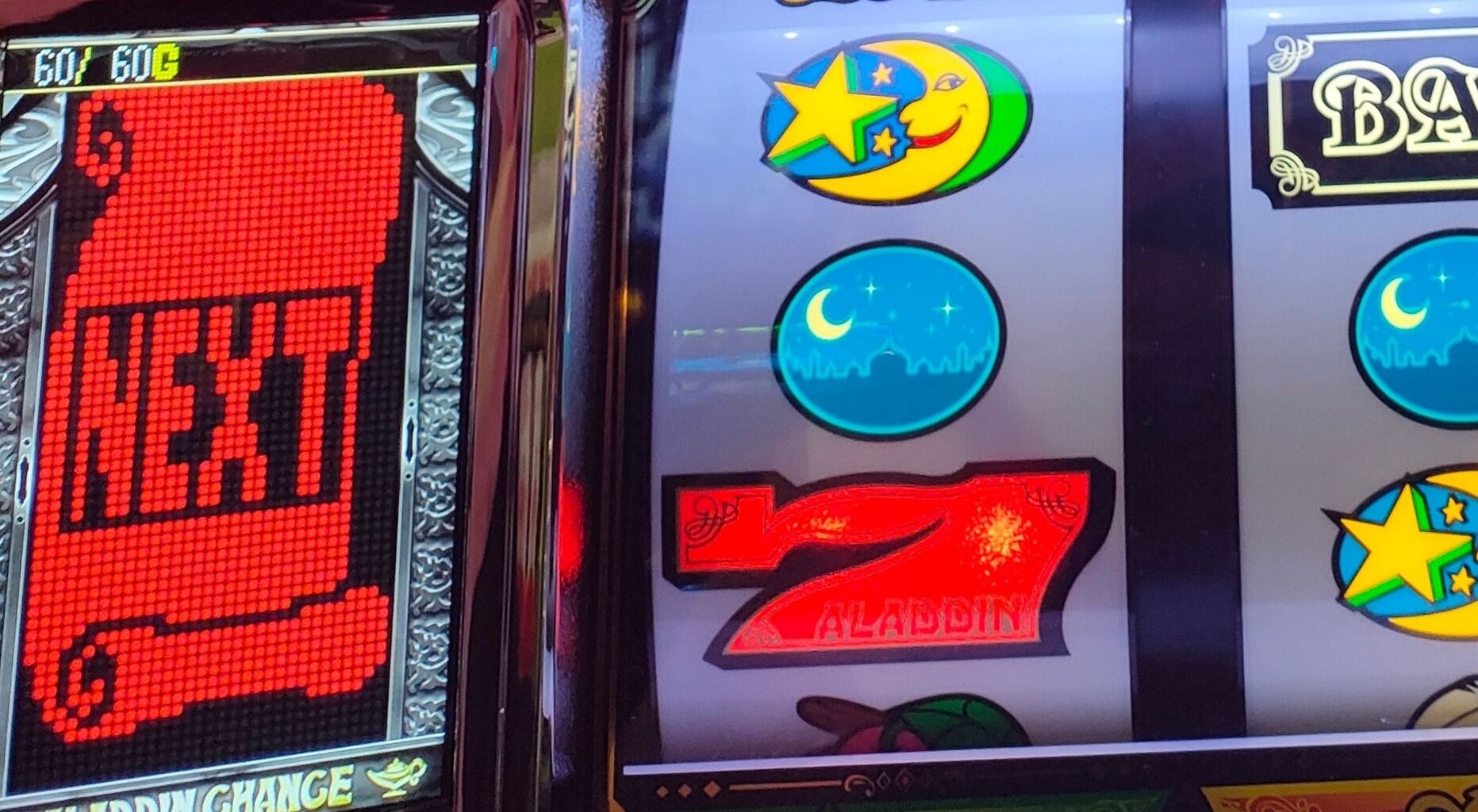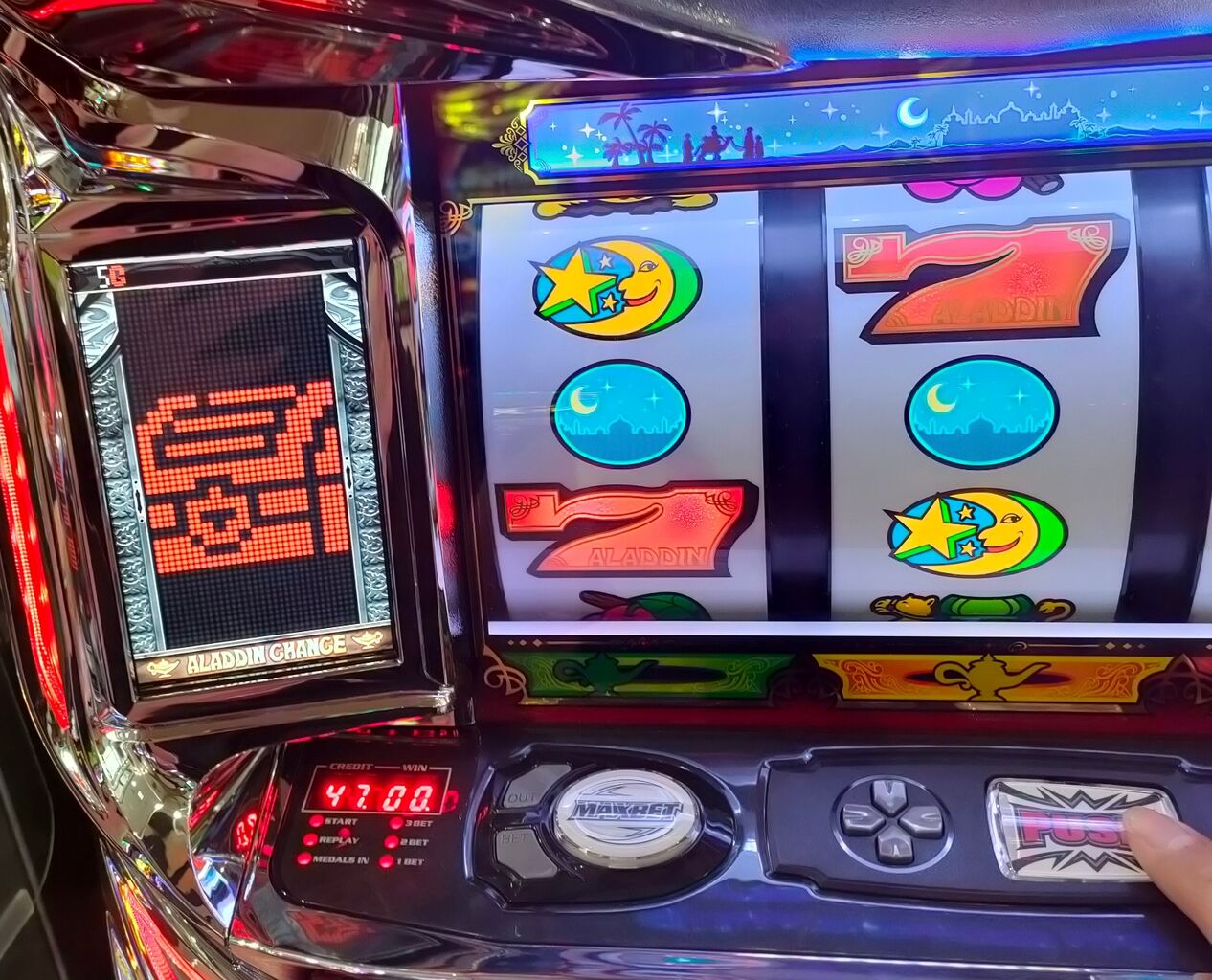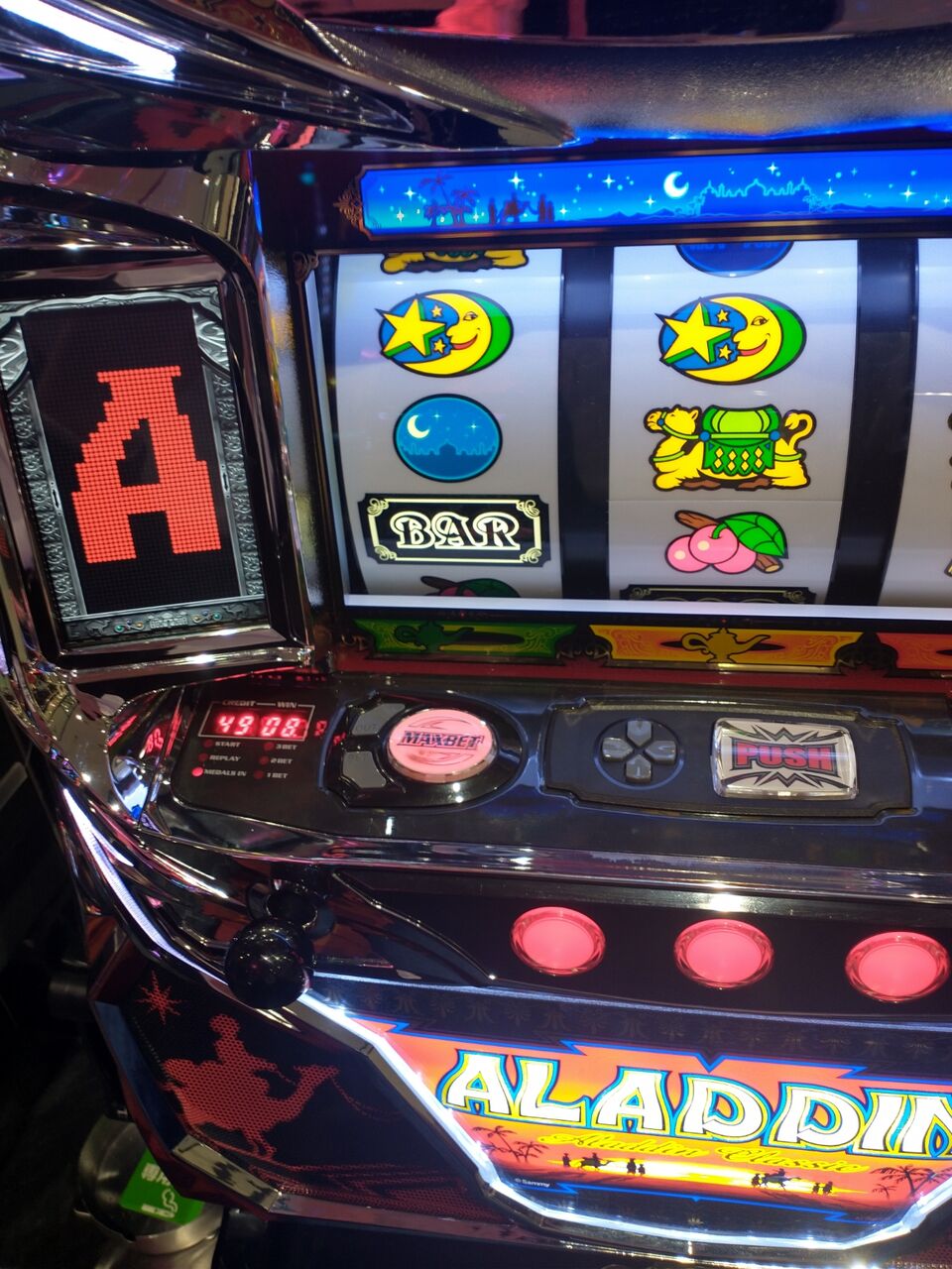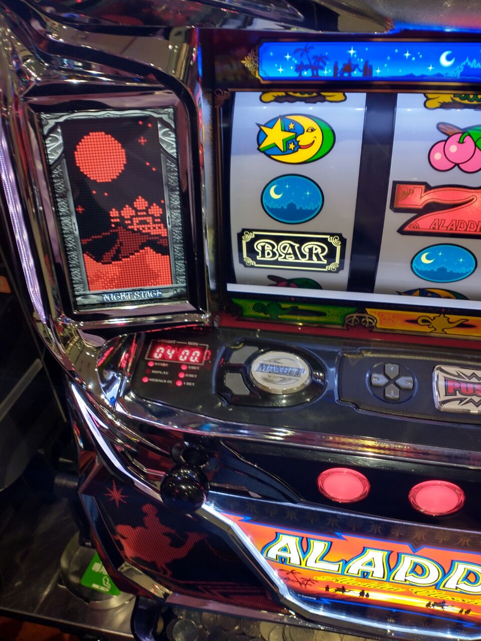 【パチスロ】ピッポッパッポ【アラジンAクラシック】 2023年02月25日 カテゴリ:パチスロ 楽しいじゃん。パチスロ アラジンAクラシックあまり打ち込みはしないけど。というかもうあまり台数も無いけれど。310G天井で現実的によく当たる。しかも絶対?かは知らないけど青ラクダ通過で当たるから、ちゃんと狙って当てた感があるからうれしい。5号機的なゾーン狙いの様な楽しさがある。いうて勝てるってほど勝てはしないんだが、何気に初めての宝箱!ようやく100枚おまけ程度のボーナスがちゃんと活かせた!ついに来た!宝箱も初めてだから当然だけど、初スーパーアラチャン!50%らしい、知らなくて良かった。1/2嫌い怖い。